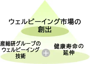 産総研グループは、この課題先進国である日本ならではの視点を活かし、人口減少・高齢社会における社会課題解決「ウェルビーイング重視社会」の実現へ向けたガイドラインの社会実装に取り組んでいます。また、この取り組みを通じ、ウェルビーイング分野での市場を拡大することで、日本のウェルビーイング関連産業の発展へ貢献します。
