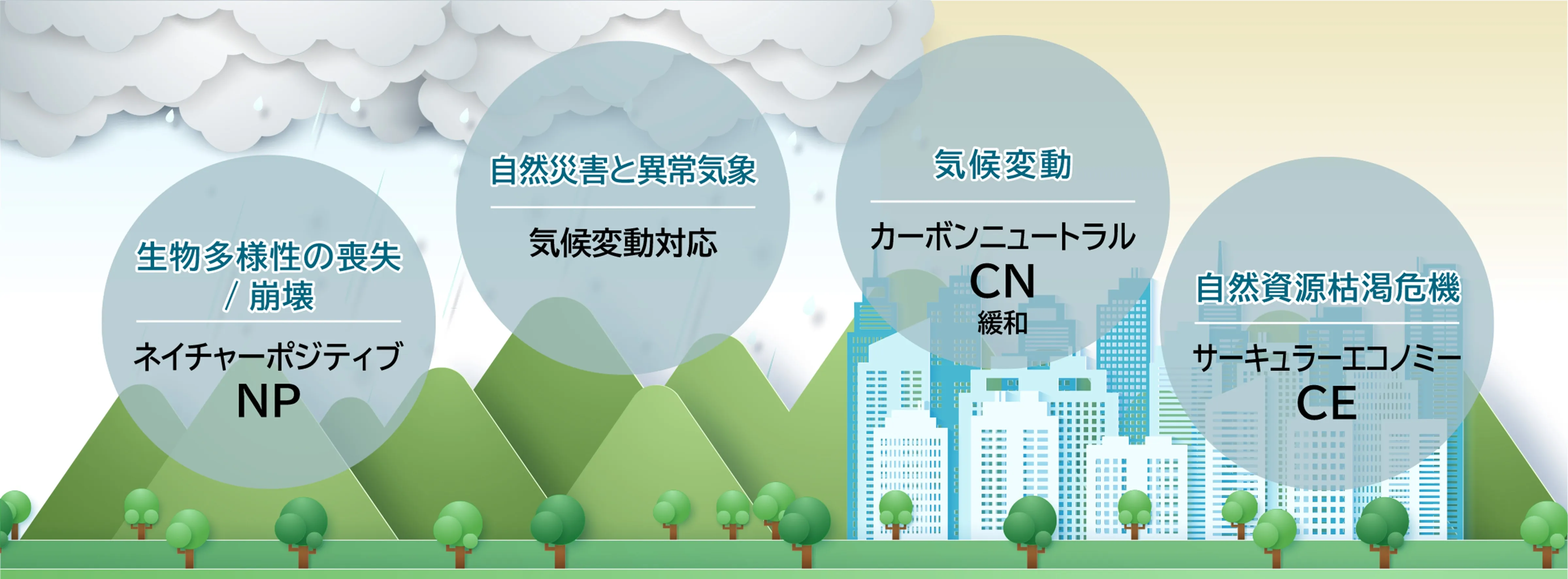 | 2023 年 TNFD開示宣言 発表 | 2020 年 2050年カーボンニュートラルを目指す宣言 |