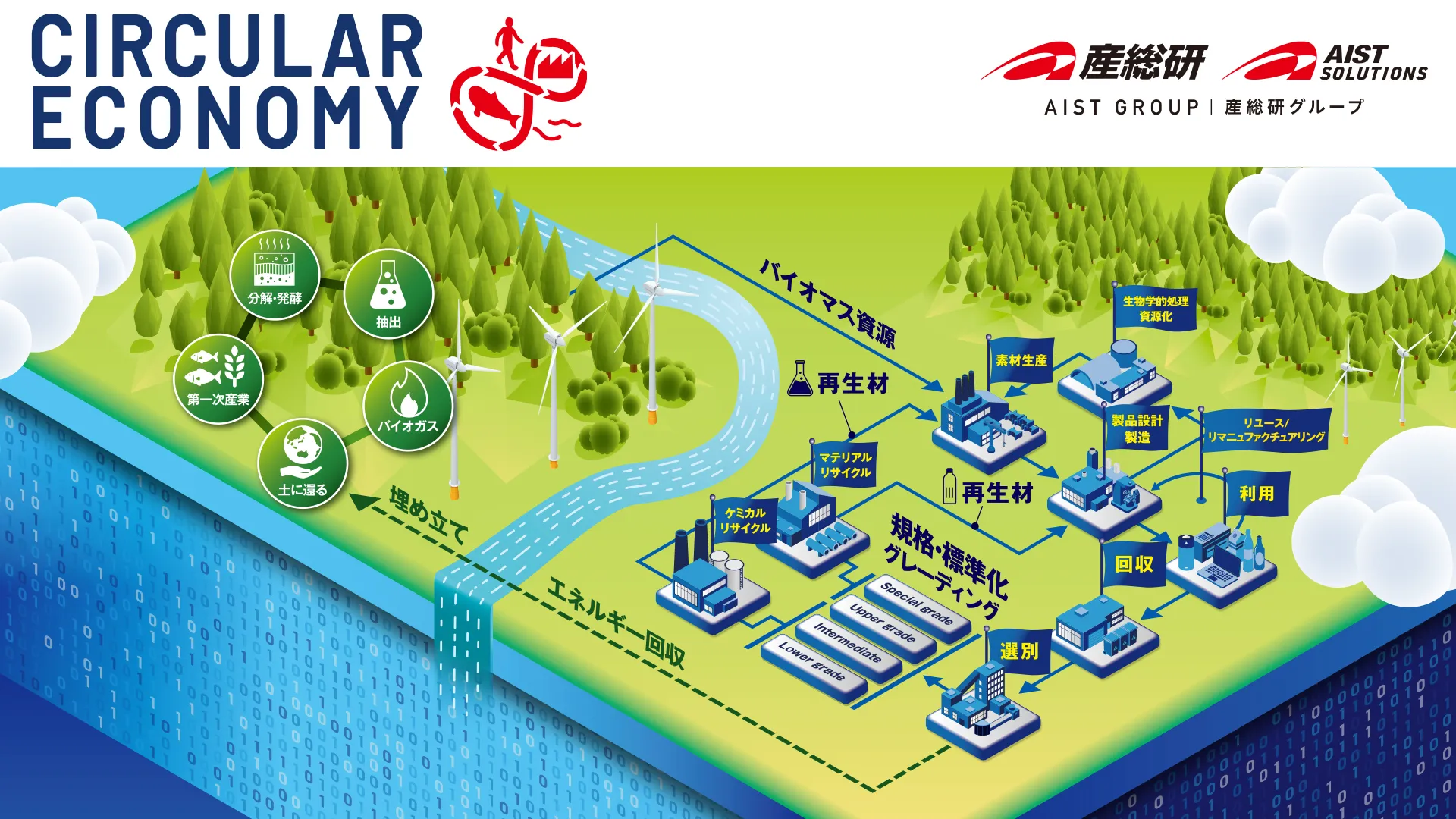 サーキュラーエコノミーご紹介資料サーキュラーエコノミー(循環型経済)は、持続可能な社会を実現するための重要なアプローチとして注目されています。 産総研では、サーキュラーエコノミーに関する研究開発を重点的に進めており、全国の拠点で多彩な技術開発に取り組んでいます。 本資料では、産総研の最新の技術と知見を活かし、環境負荷の低減や新たな事業機会の創出の流れについてご紹介します。
