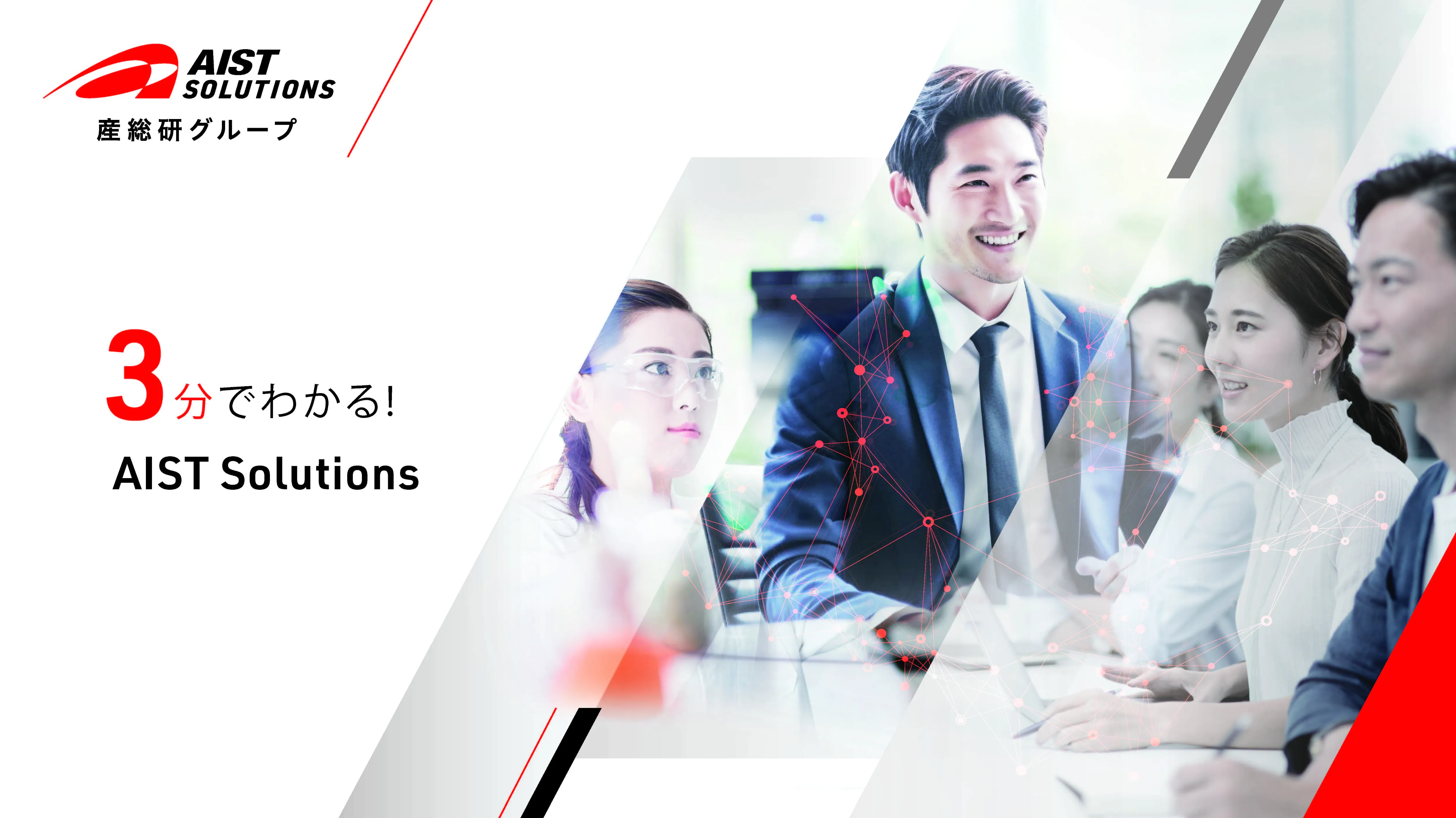 3分でわかる!AIST Solutions日本最大級の公的研究機関である産総研の研究成果の社会実装を加速するために、産総研100%出資により設立された株式会社AIST Solutions。 弊社が目指す姿、提供サービス、具体的な利用シーン等をご紹介します。