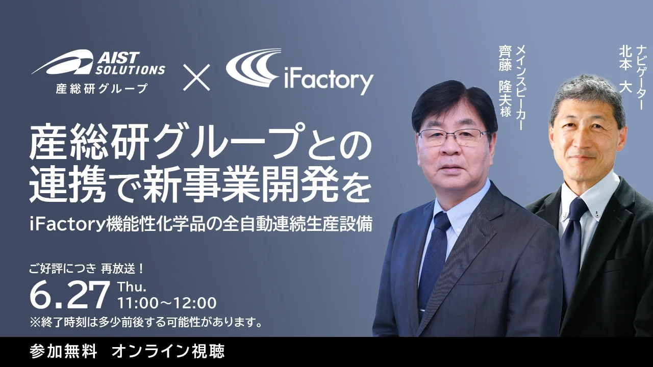 今後も 産総研グループ としてiFactoryと連携しながら、さらなる技術開発や事業運営、普及を進めていきます。今回はiFactoryの代表取締役 CEOである齊藤隆夫氏に、産総研グループと連携することのメリットや、今後の展望についてお話いただきます。