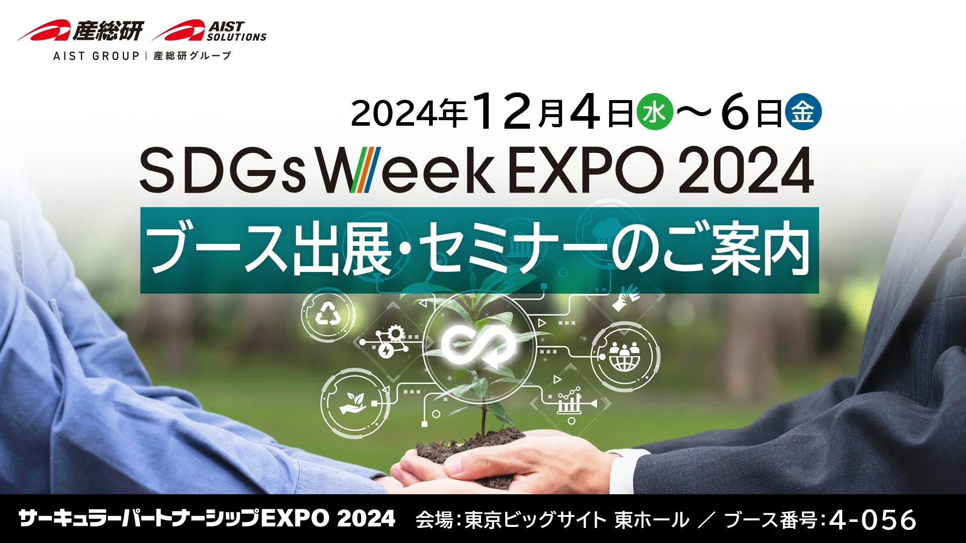 12月5日(木曜日)14:00から 、サーキュラーパートナーシップEXPO 出展者プレゼンテーションステージ(東京ビッグサイト東4ホール内ステージ会場)にて、 産業技術総合研究所 触媒化学融合研究センター ケイ素化学チーム 主任研究員 田中 真司 と AIST Solutions プロデュース事業本部 事業構想部 サーキュラエコノミーチーム プロデューサ中林 亮 によるセミナー 「革新的PETケミカルリサイクル技術の社会実装」 を実施いたします。