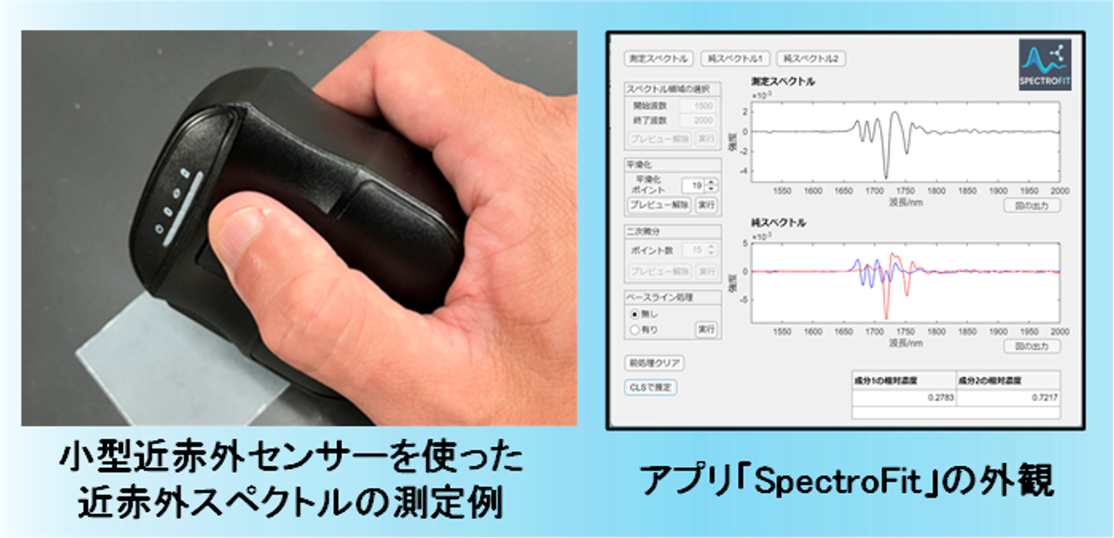 講座では、各アプリの基本的な機能や操作方法をわかりやすく解説するとともに、具体的な事例を用いた実習を行います。さらに、実践的な応用例として、光分析技術とデータインフォマティクスを組み合わせて開発された新アプリ「SpectroFit」もご紹介します。ハンディタイプの近赤外分光器でプラスチック試料を測定し、樹脂成分量を推定する体験を通じて、そのイメージを掴んでいただけます。化学分野に限らず、食品、化粧品、医薬品など業種を問わず展開できる柔軟性を備えてお