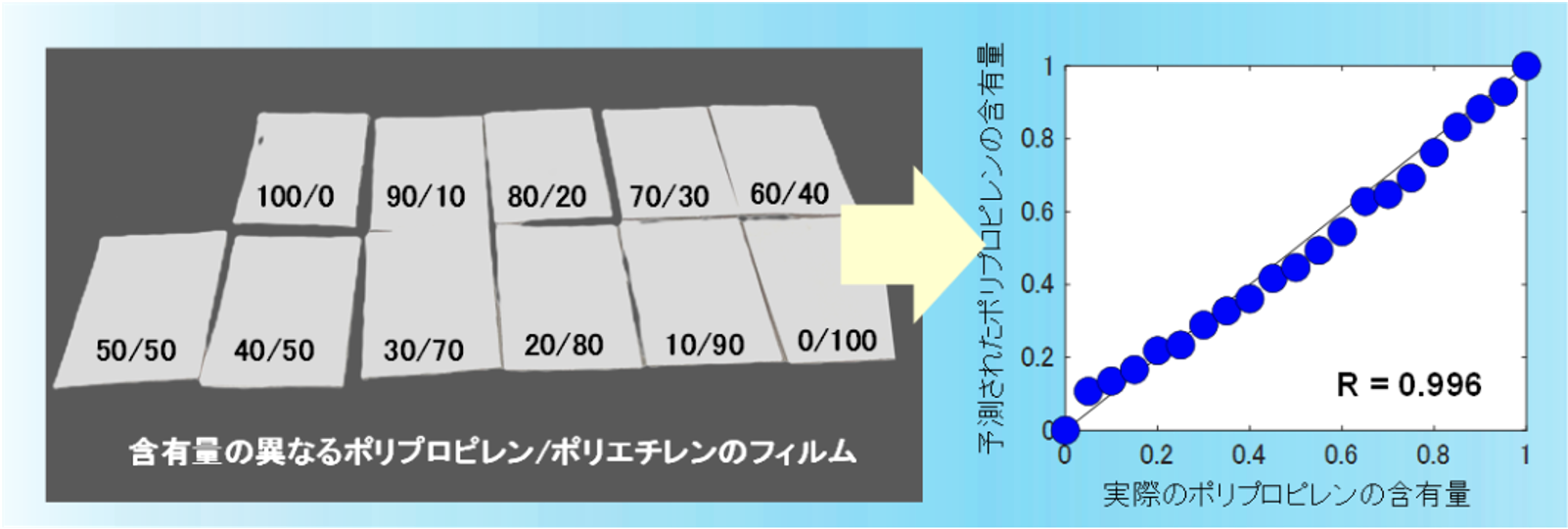 SpectroFit:近赤外センサーによるプラスチック材の近赤外スペクトルの測定イメージ、及び分析例