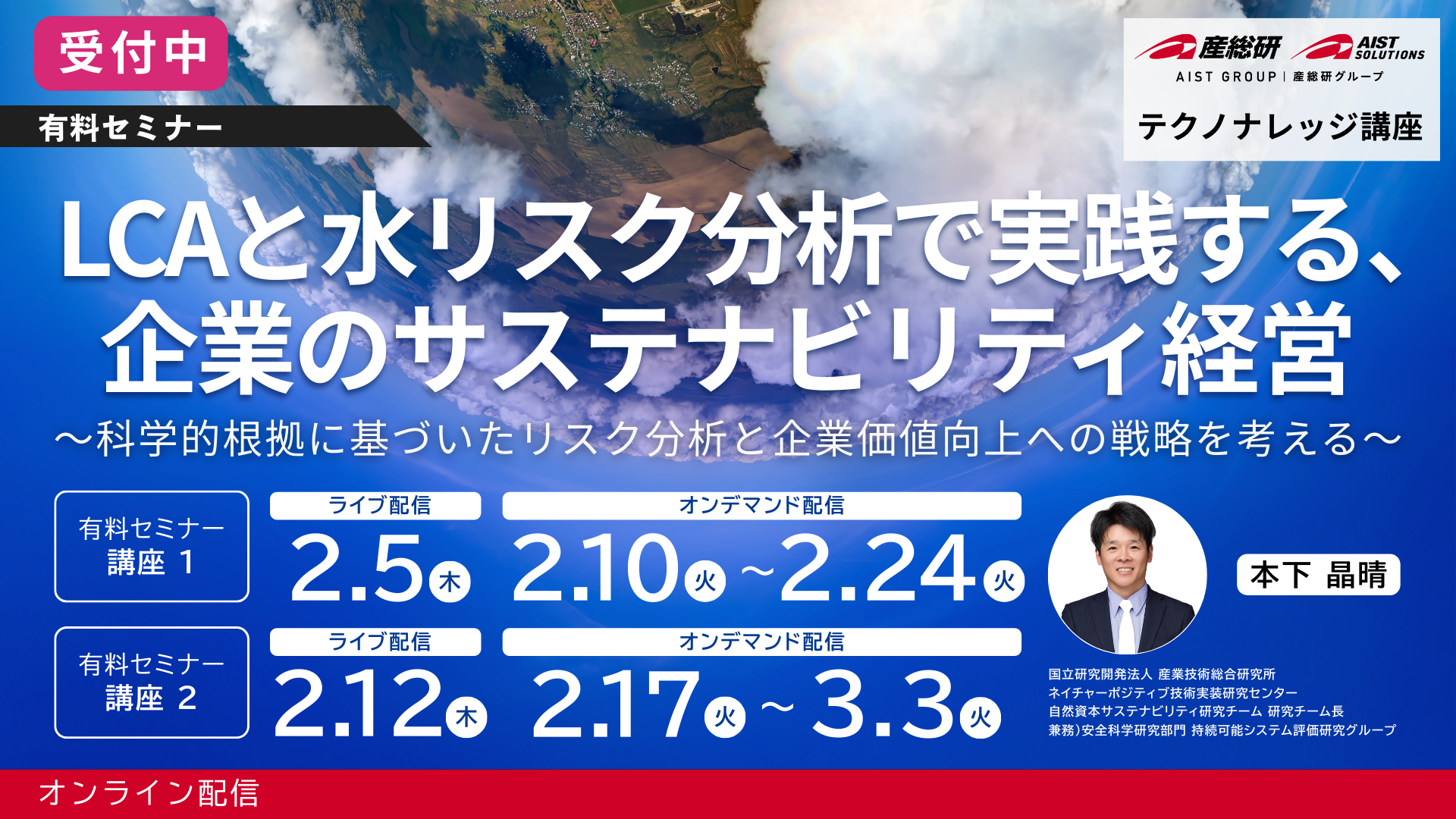 LCAと水リスク分析で実践する、企業のサステナビリティ経営~科学的根拠に基づいたリスク分析と企業価値向上への戦略を考える~ <見逃しオンデマンド配信あり>