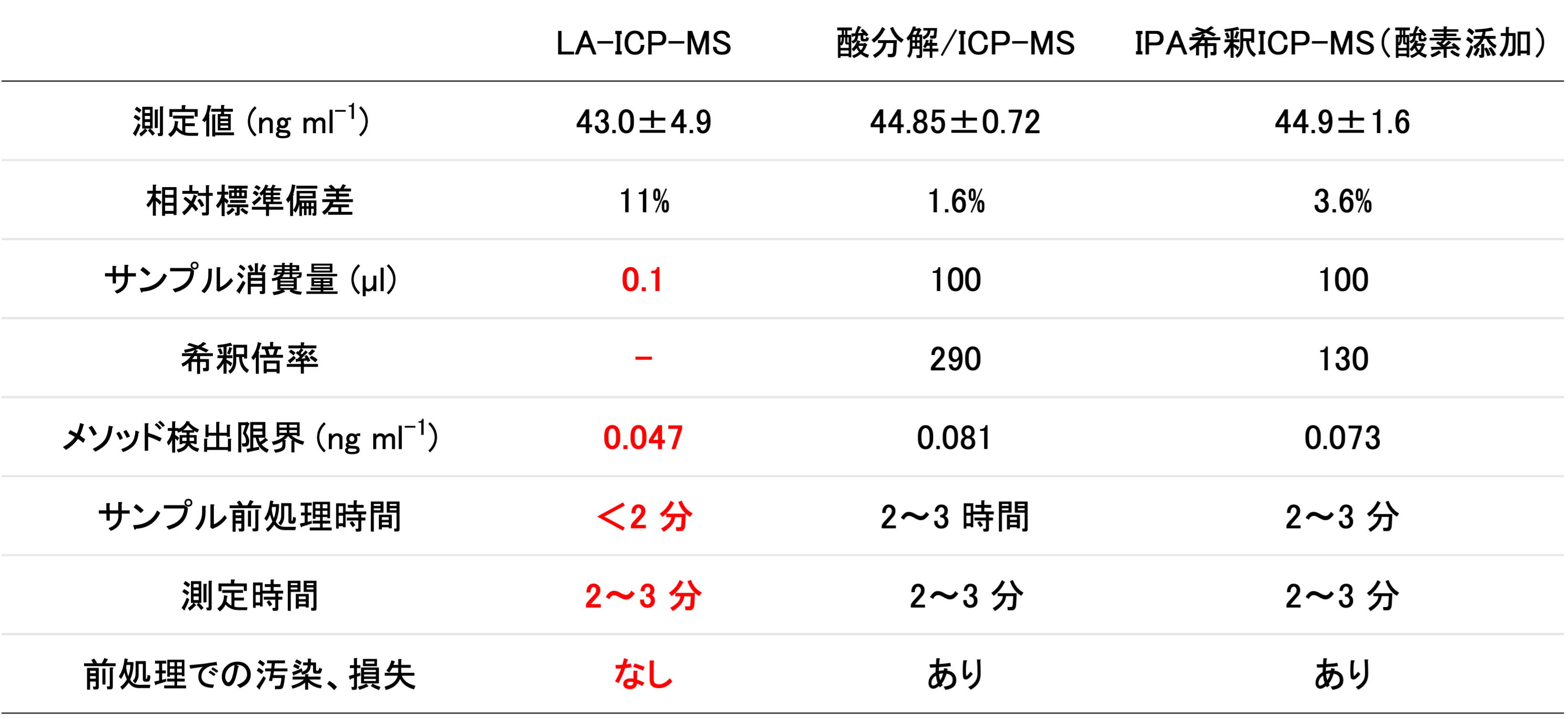 LA-ICP-MSの検出下限例