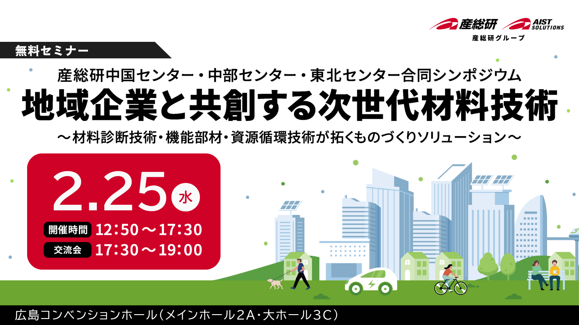 産総研中国センター・中部センター・東北センター合同シンポジウム 地域企業と共創する次世代材料技術 ~材料診断技術・機能部材・資源循環技術が拓くものづくりソリューション~