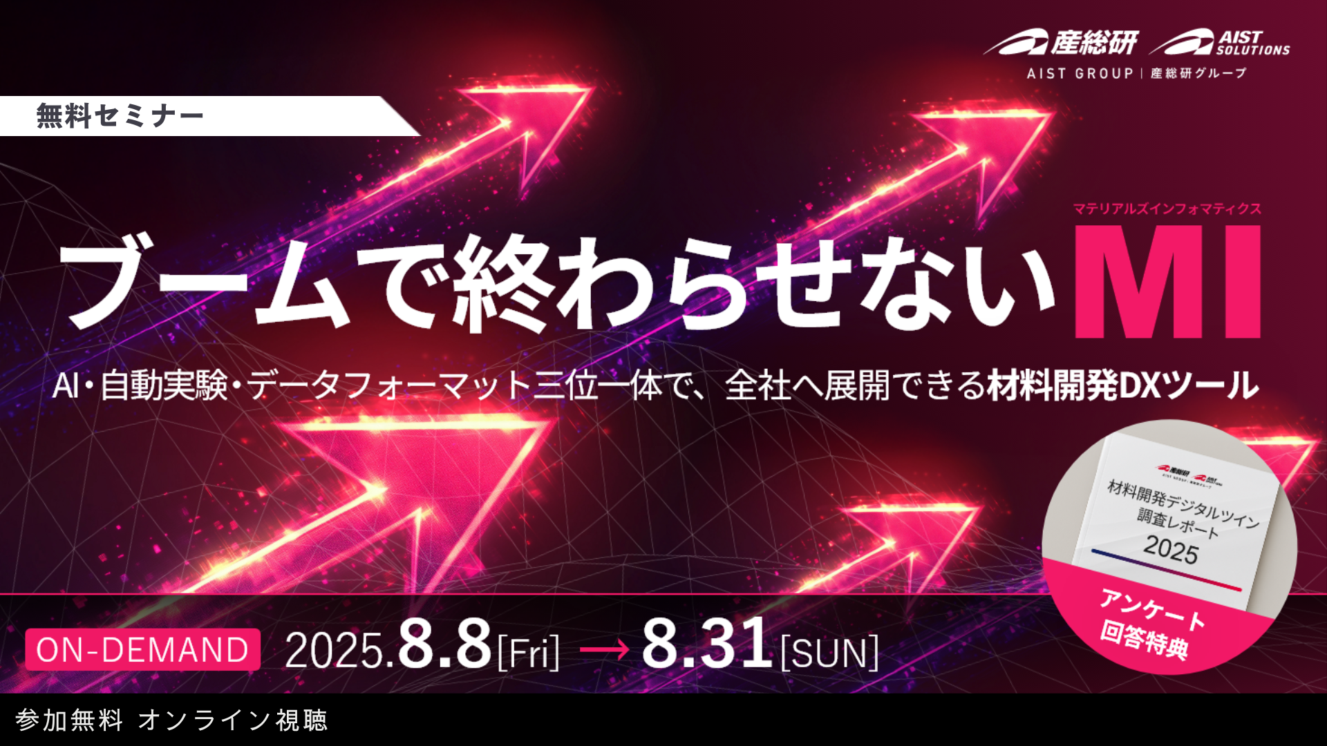 ※申込み後、当日の案内メールが届かない方は、お手数ですがマテリアルDXイベント担当( MDX-eve-ml@aist-solutions.co.jp)までご連絡ください。