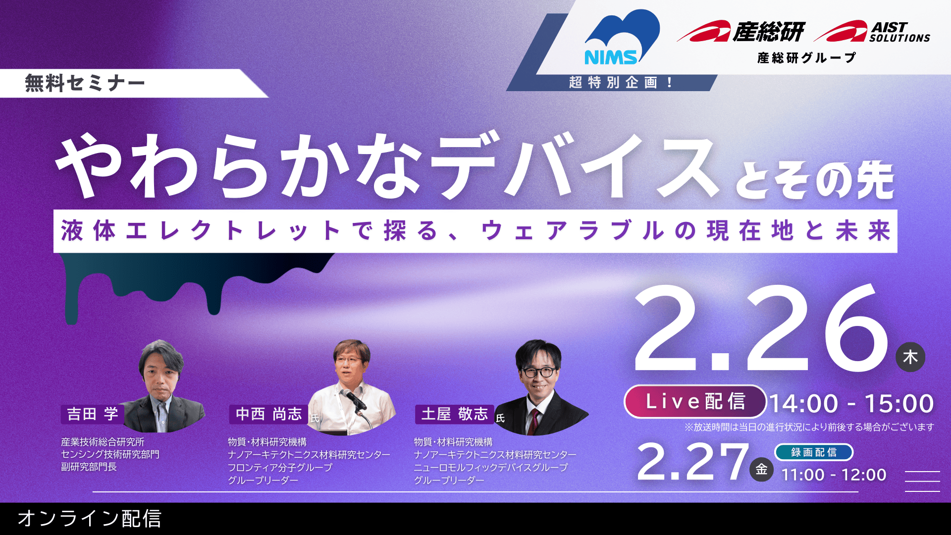 ホームイベント・ウェビナー Events & Webinars【超特別企画】AIST×NIMS Live配信ウェビナー やわらかなデバイスとその先