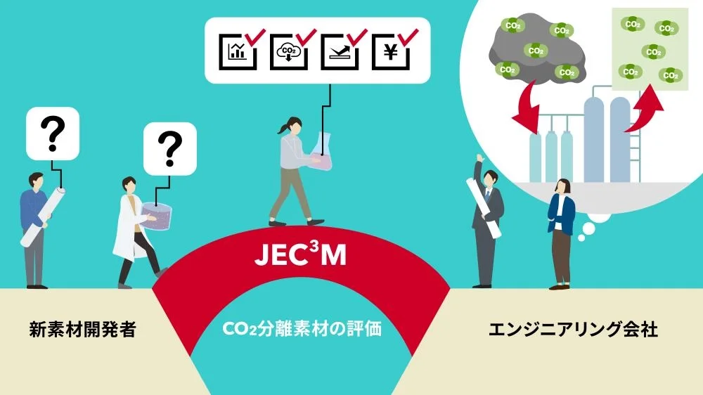 産総研グループ(国立研究開発法人 産業技術総合研究所(以下「産総研」)および株式会社AIST Solutions(以下「AISol」)の総称)では、二酸化炭素(CO 2 )分離素材を評価するサービスを開始します。この評価は、産総研東北センターおよび早稲田大学に整備されたCO 2 分離素材評価センター(Japan Evaluation Center for CO 2 Capture Materials, JEC 3 M)の評価装置群を用いて実施します。本サービスは、評価を希望する企業などから受け入れたCO 2 分離素材(吸収液・吸着剤・分離膜)に対し、実用化に向けて重要となる素材特性・分離性能・耐久性について信頼性の高い評価を提供します。また、独自に開発した簡易評価ツールを用いて、分離素材ごとのエネルギー消費量とコストの評価を行うことが可能です。本サービスを利用することにより事業化を検討するための基礎データを揃えることができます。個社では困難な客観的な評価は、素材メーカーなどのCO 2 分離素材を開発する側とエンジニアリング会社などの利用する側の双方にメリットがあり、CO 2 分離回収技術の実用化を加速させます。