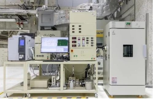 アミン系の吸収液では主に酸化と熱分解による複合劣化が生じます。本装置により、吸収液の酸化劣化を加速するための成分や、吸収液の高温部での滞留時間を調整した、加速劣化試験を実施できます。