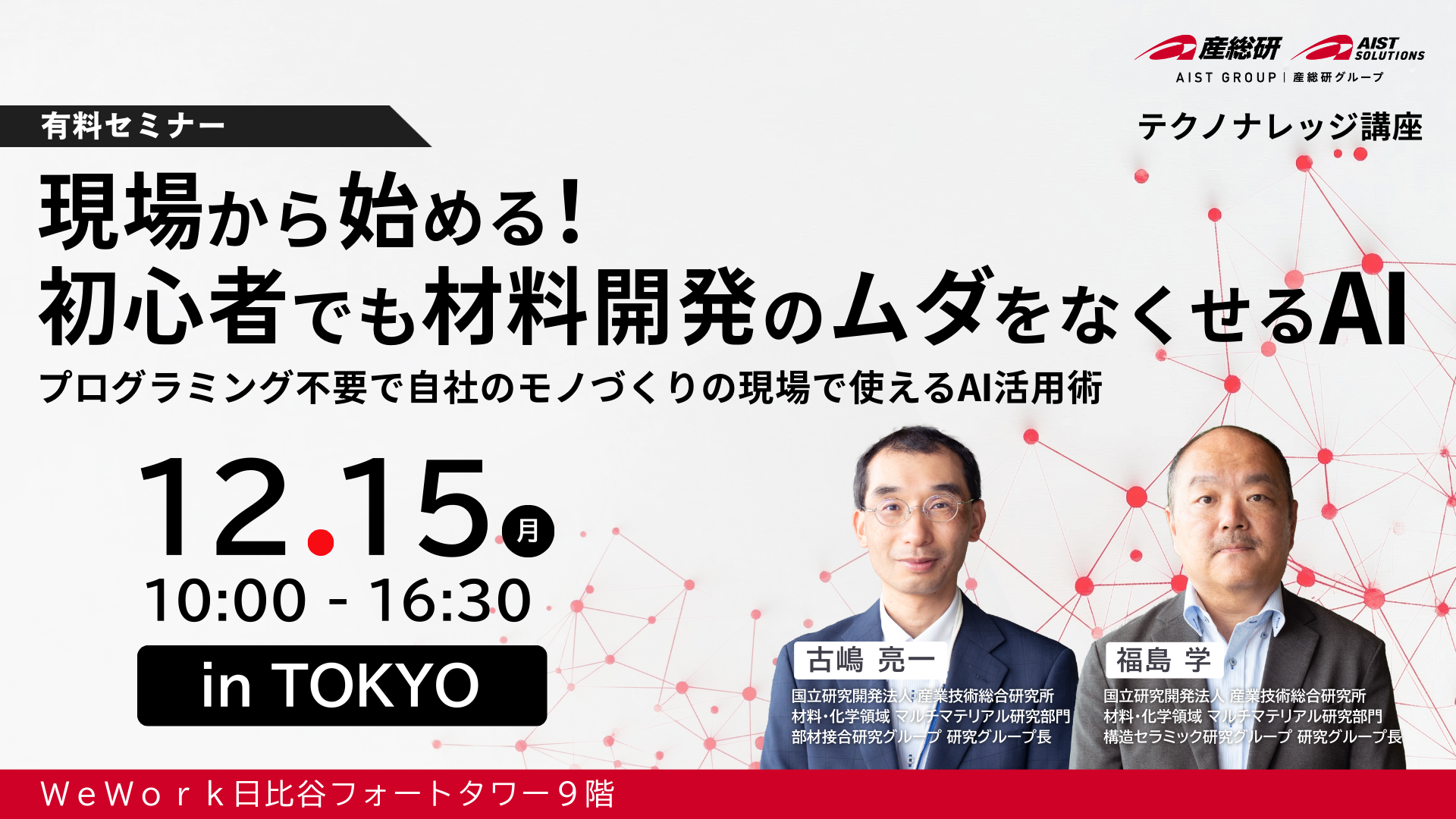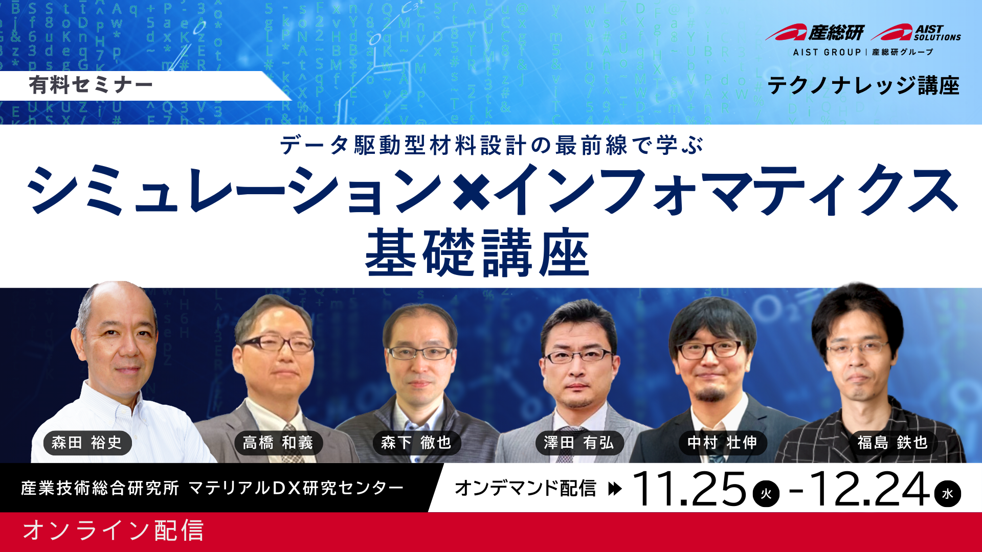 マテリアルDXのイベントに関するお問い合わせは、( MDX-eve-ml@aist-solutions.co.jp)までご連絡ください。