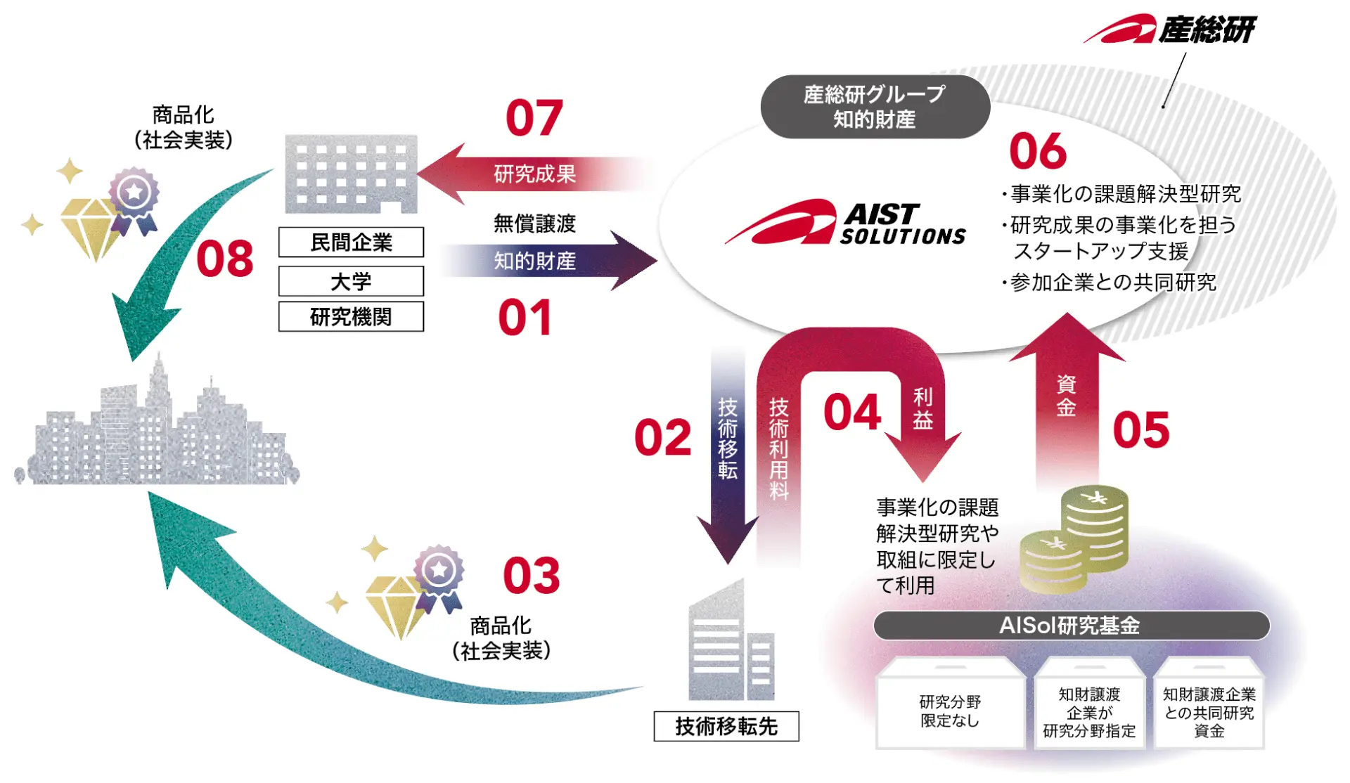 知財譲渡企業にAISolが研究成果を無償で開放します。