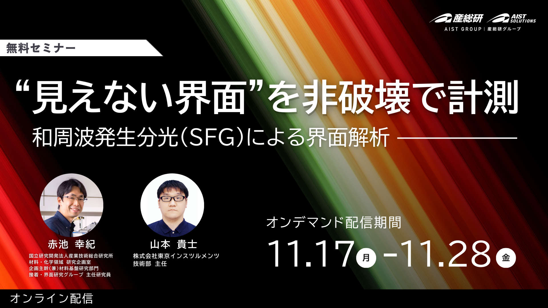 本セミナーでは、和周波発生分光(SFG: Sum Frequency Generation spectroscopy) を用いた表面・界面の解析技術を、企業の研究開発・製品開発にどう活かせるかに焦点を当てます。